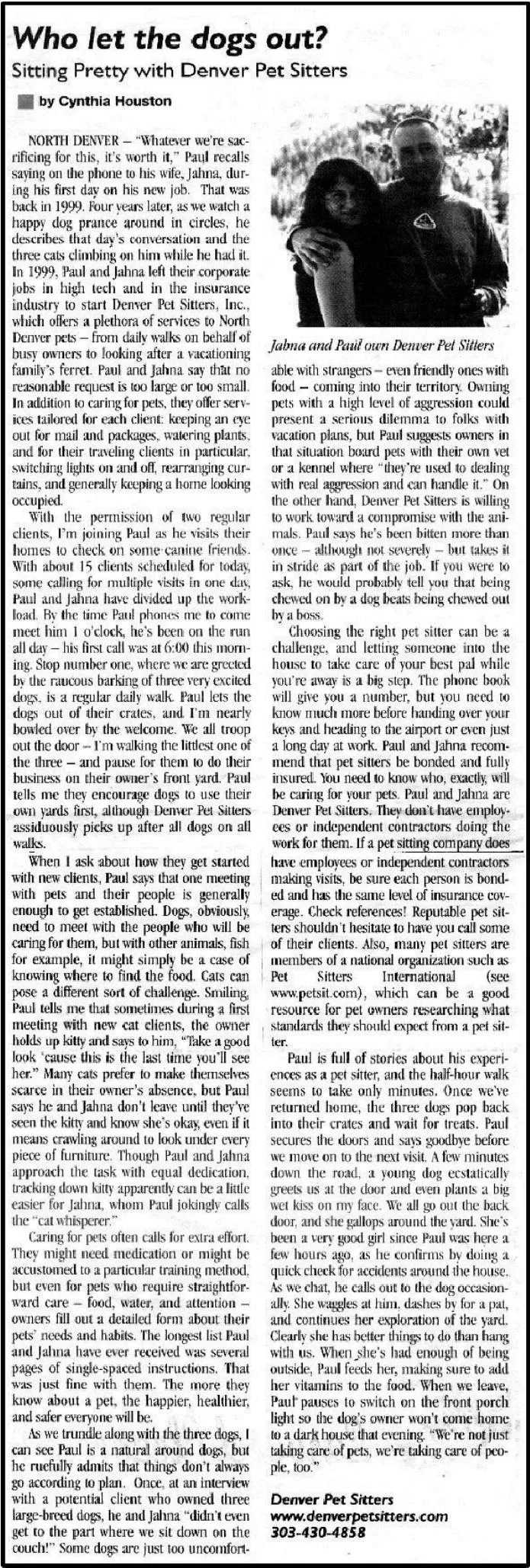 Pet Sitting & Dog WalkingDenver Pet Sitters Inc Highlands Cat Sitting and Dog Walking Service