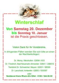 Veterinary ClinicDie Sorge um die Gesundheit und das Wohlbefinden Ihres Tieres ist nicht nur unser Beruf, sondern auch unsere Berufung. Unser Anspruch ist aktuelles Fachwissen mit Einfühlungsvermögen für Zwei- und Vierbeiner zu kombinieren. Daher legen wir in unserer Praxis Wert auf gute Vorsorge, eine gründliche Diagnostik und eine individuelle ganzheitliche Therapie. Gesundheitsfragen, Krankheits-ursachen und Behandlungsmöglichkeitenwerden bei Bedarf ausführlich mit Ihnen besprochen und entschieden.