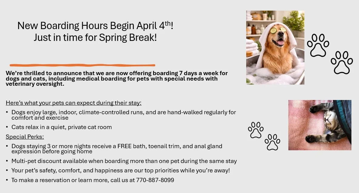 Typical veterinary clinic hours shown. Please call to confirm actual hours.