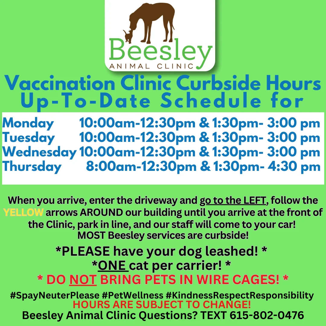 Veterinary ClinicBeesley Animal Foundation and Beesley Animal Clinic are located in Murfreesboro, but serve Middle Tennessee. Spay/Neuter cats and dogs, Wellness, Preventatives, Pet Food, and Vaccinations through Outreach. Kindness, Respect, and Responsibility for pets and people.