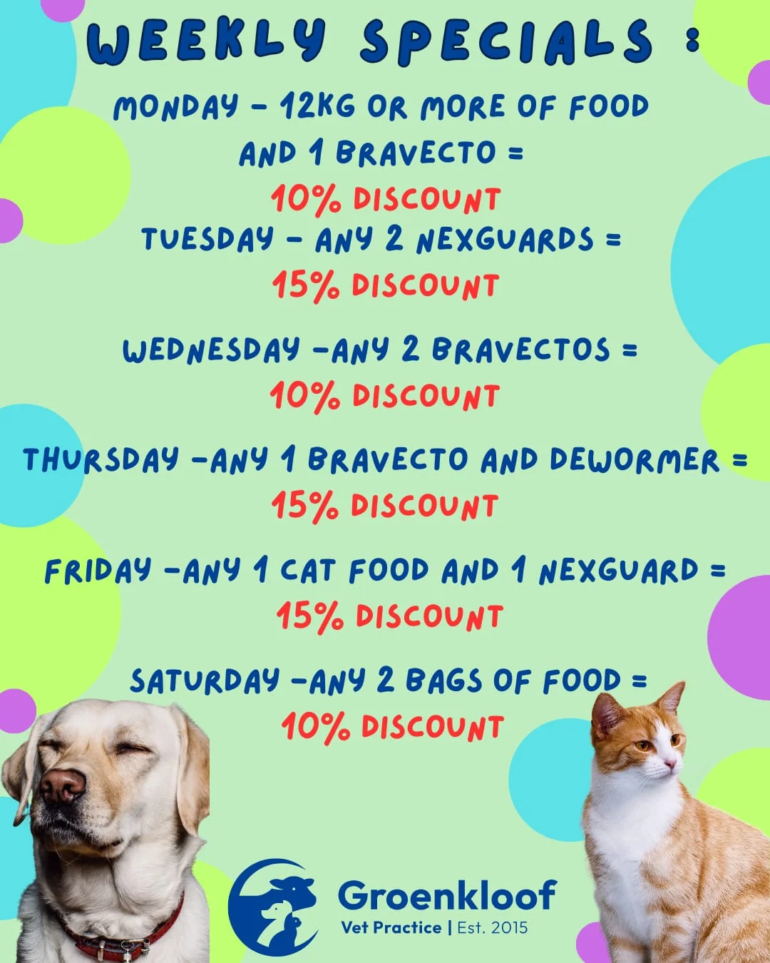 Typical veterinary clinic hours shown. Please call to confirm actual hours.
